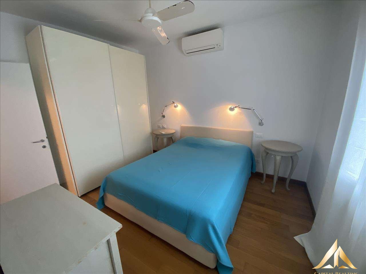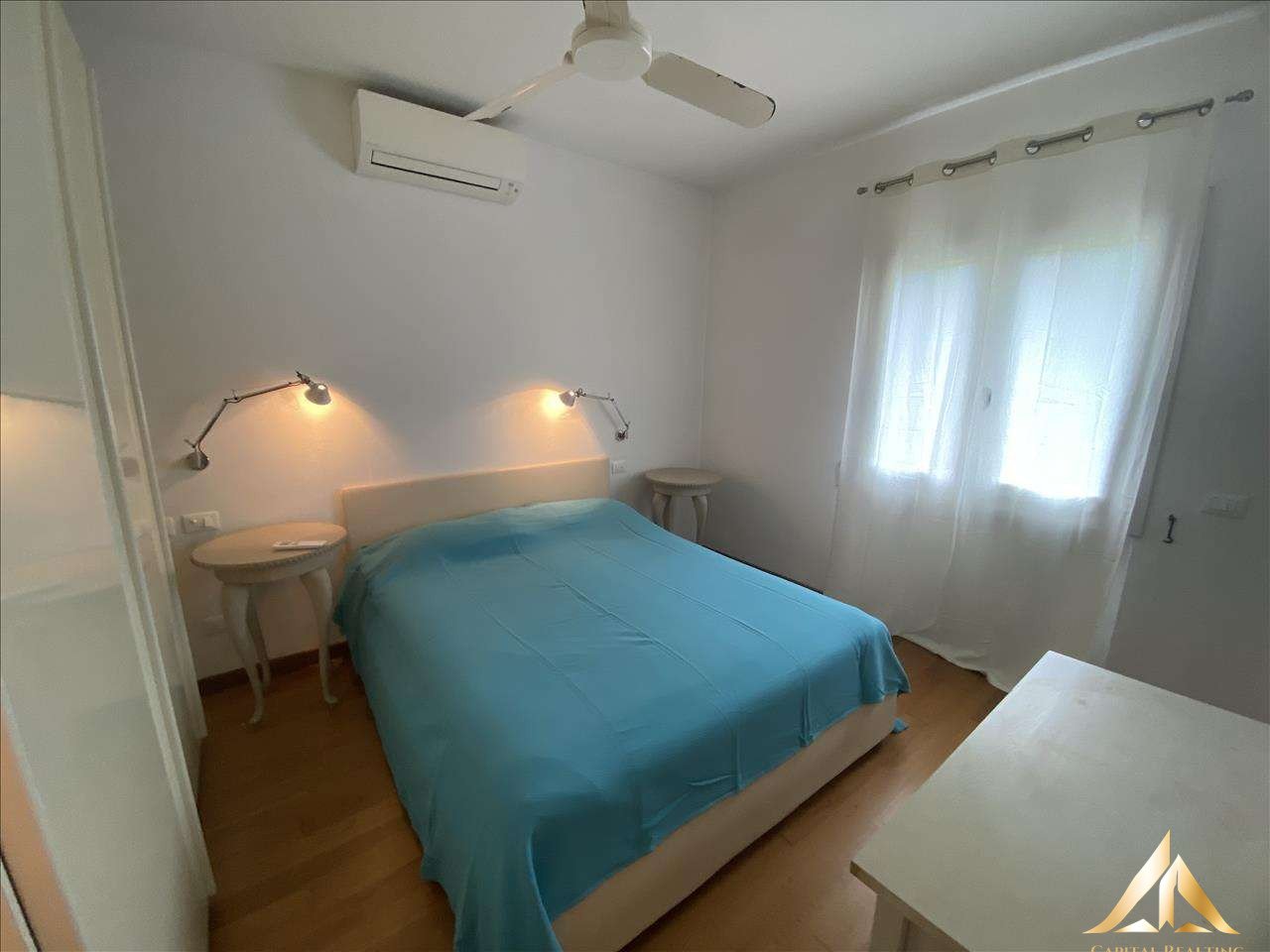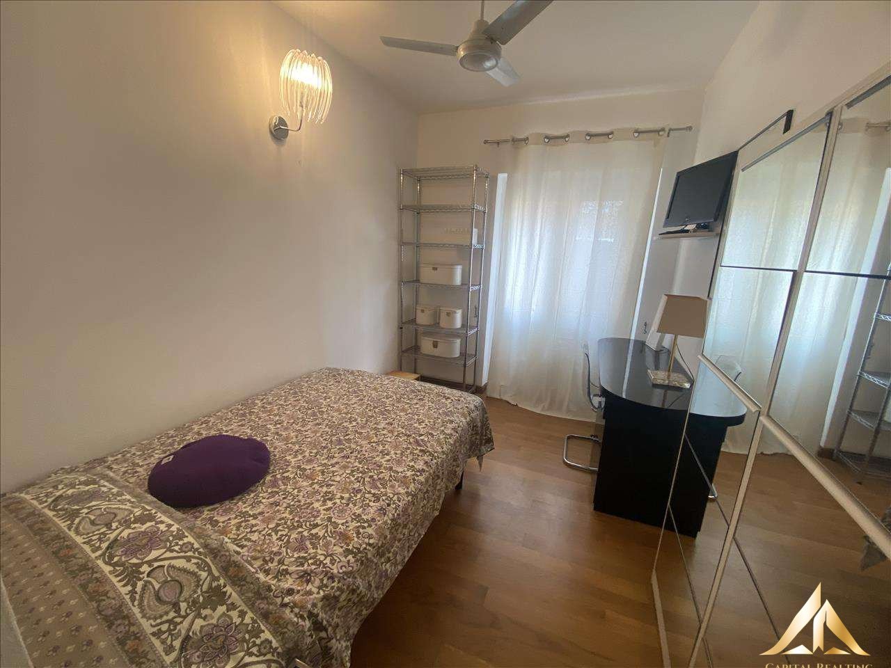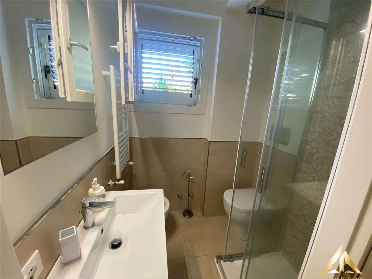 At 500 meters from the sea and 250 meters from the shopping center, ground floor apartment consisting of large living / dining room, kitchen, 1 double bedroom with bathroom, 1 double bedroom, 1 bedroom with French bed , 1 bathroom with shower. Garden with pergola. Private parking space. All bedrooms have ceiling fans, the master bedroom and the living room also have air conditioning.
