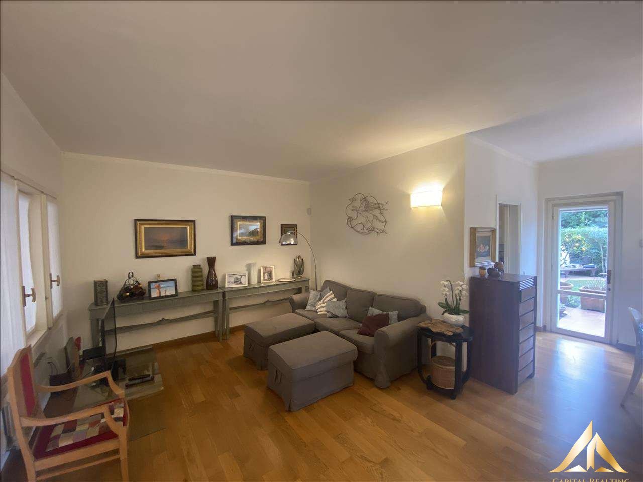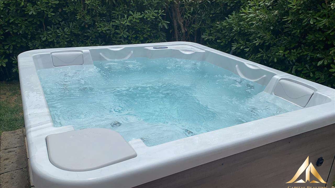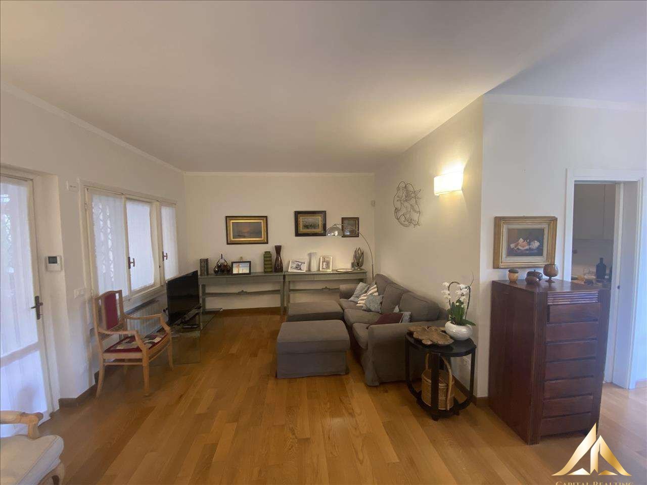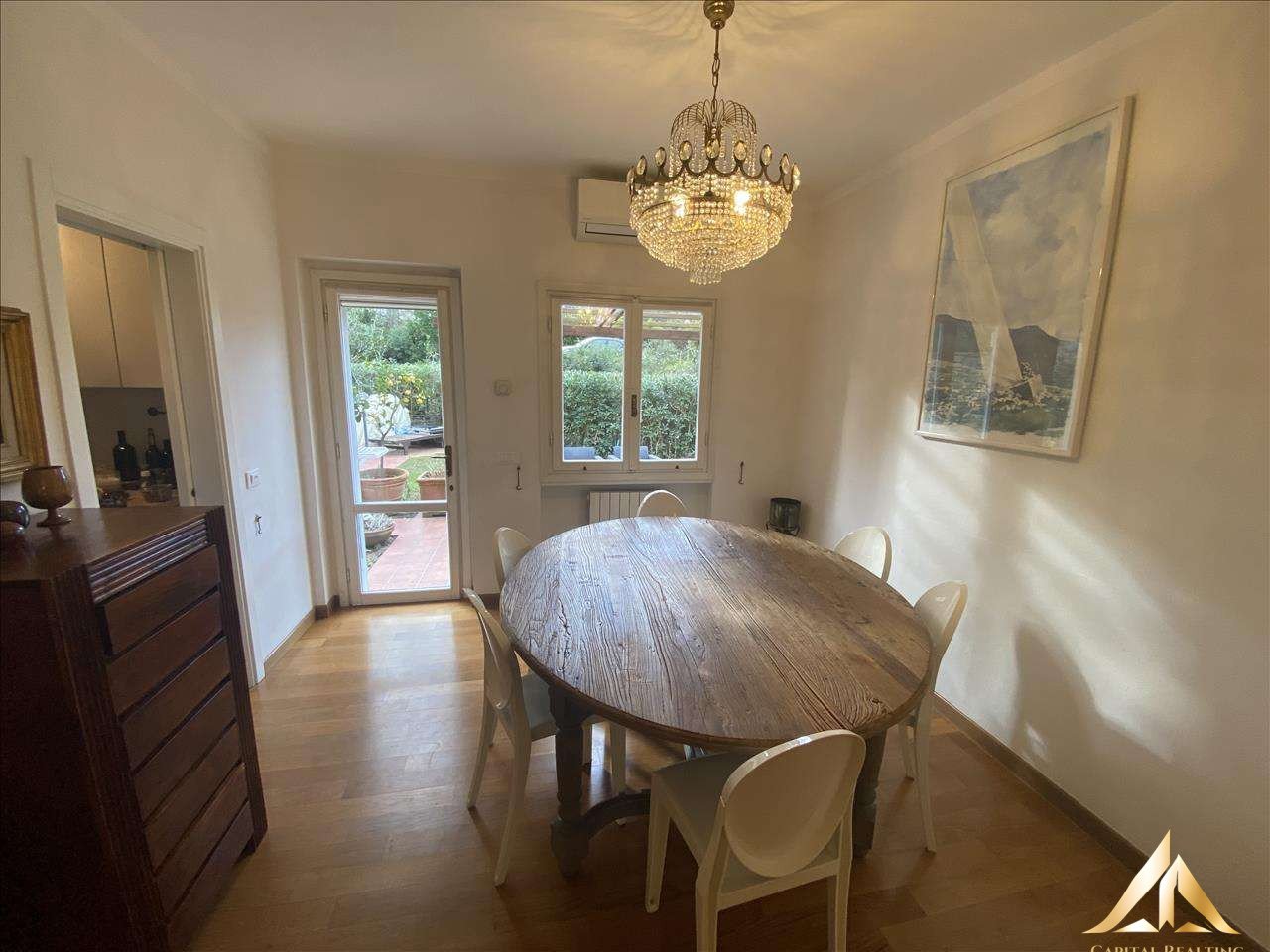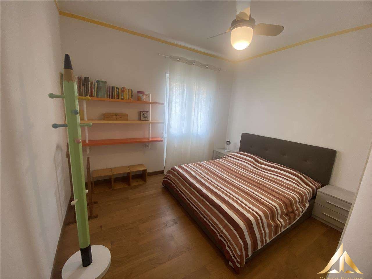 At 500 meters from the sea and 250 meters from the shopping center, ground floor apartment consisting of large living / dining room, kitchen, 1 double bedroom with bathroom, 1 double bedroom, 1 bedroom with French bed , 1 bathroom with shower. Garden with pergola. Private parking space. All bedrooms have ceiling fans, the master bedroom and the living room also have air conditioning.