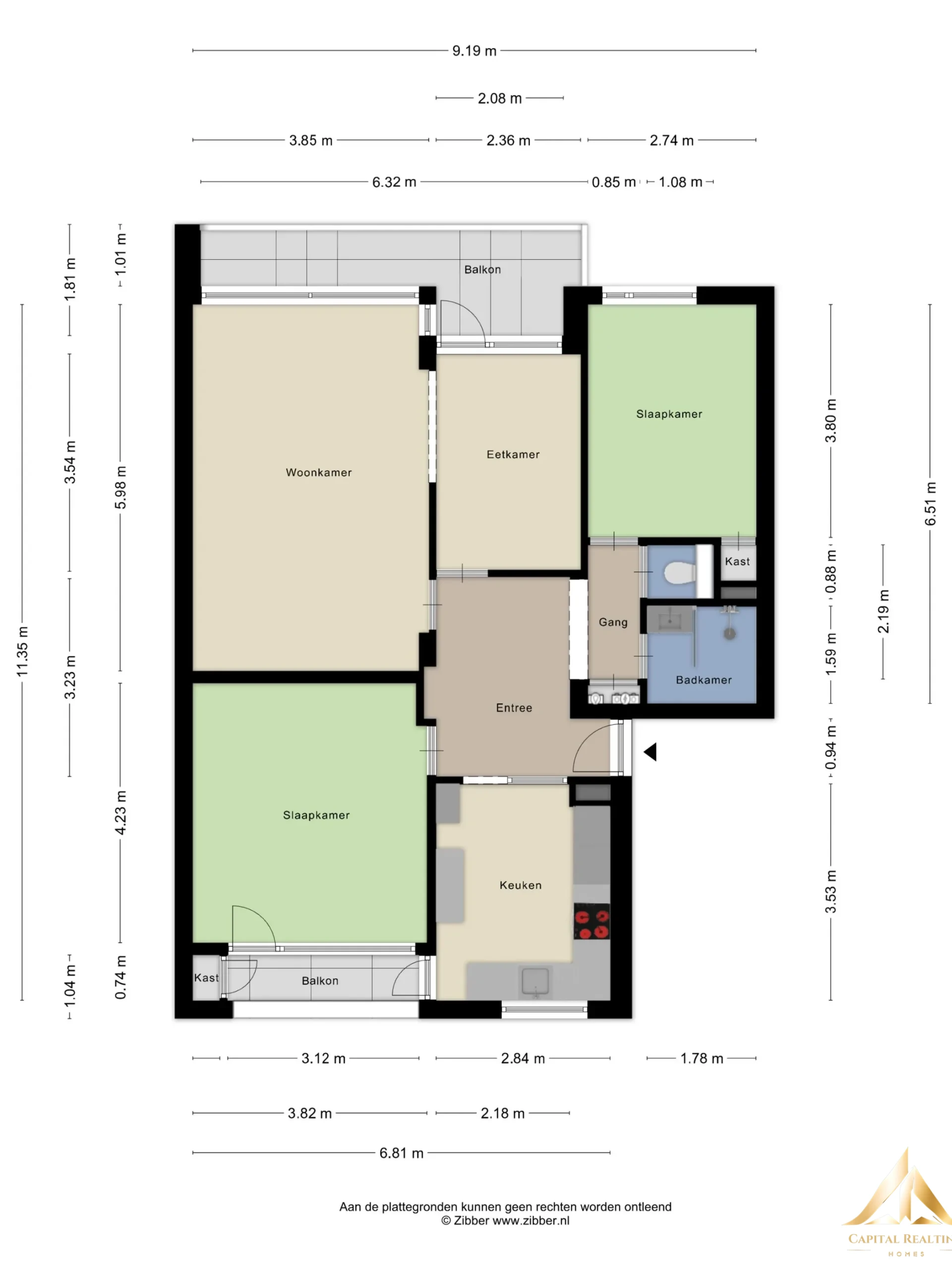 A bright, spacious and ready-to-move-in apartment with two balconies and an unobstructed view over greenery, that is exactly what you will find at Adriaan Dortsmanstraat 115 in Rotterdam! This well-kept apartment of approx. 87 m² is located on the first floor of a neat apartment complex from 1967 and offers a surprisingly spacious and practical layout. Thanks to the large windows and the open design, the house feels wonderfully light and spacious. Here you really only have to add your own taste and put your stuff down. Through the closed porch with doorbells, mailboxes, elevator, staircase and access to the storage rooms you reach the first floor where the apartment is located. Upon entering you enter the spacious central hall, the heart of the house, from which all rooms are accessible. At the front of the apartment is the spacious kitchen in L-shape. This modern kitchen is equipped with various built-in appliances and offers access to the east-facing balcony, a wonderful place to start the day with a cup of coffee in the morning sun. The first bedroom is also located at the front and also has access to this balcony. The living room is particularly spacious and light because the former third bedroom is involved in the living room. This has created a spacious living space where you can easily create different seating areas. From the living room you can step onto the balcony at the rear, located on the west, where you can enjoy the afternoon and evening sun after a working day with a beautiful unobstructed view over the green park. At the rear is also the second bedroom, a comfortable room with a practical built-in closet and also a view of the greenery. The house also has a modern bathroom and a separate toilet. The house is neatly finished with a concrete floor with a stylish herringbone PVC floor, tightly plastered and painted walls and wooden frames with double glazing. The location is also attractive. The house is located in a quiet, green residential area with the park literally at your rear. In the immediate vicinity you will find various shops, supermarkets, sports clubs and schools. Public transport is also well organized with tram and bus connections a short distance away. You can reach the center of Rotterdam within about 15 minutes by bike or public transport, while roads such as the A16 and A20 are also quickly accessible to Dordrecht, The Hague and Utrecht, among others.