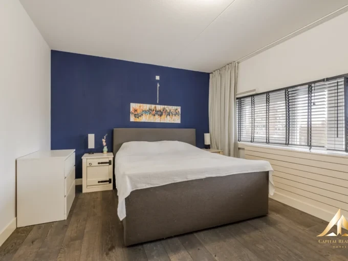 Первый этаж: Вход в дом осуществляется через главный вход. В прихожей находится шкаф для счетчиков, современный туалет (встроенный шкаф с фонтаном) и лестница на второй этаж. В передней части дома расположена ориентированная на улицу столовая — прекрасное место для ужинов или уютных вечеров с друзьями и семьей. Столовая соединена с роскошной кухней, оборудованной различной встроенной бытовой техникой, включая индукционную плиту, посудомоечную машину, холодильник с морозильной камерой и комбинированную печь. Кухня предлагает много рабочей поверхности и места для хранения и является сердцем дома. Рядом с кухней находится практичная подсобная комната с местом для стиральной машины и сушилки. В задней части дома расположена ориентированная на сад гостиная с раздвижной дверью, ведущей во двор. Благодаря большим окнам это чудесно светлая комната с приятным видом на сад. Весь первый этаж отделан современной плиткой под дерево с комфортным подогревом пола. Второй этаж: На втором этаже расположены две просторные спальни. Благодаря мансардным окнам спереди и сзади, комнаты светлые и просторные. Здесь же находится стильная ванная комната с подогревом пола. В ванной комнате есть туалет, ванна, двойная раковина с мебелью и просторная душевая кабина. Здесь же расположен котел центрального отопления. Сад: Дом имеет красивый задний двор с южной стороны, так что вы можете в полной мере наслаждаться солнцем. Сад не требует особого ухода и имеет задний вход. В задней части сада находится практичная кладовая с электричеством, идеально подходящая для велосипедов и садового инвентаря. Вкратце: – Дом готов к заселению, современная отделка; – Роскошная кухня с полным комплектом бытовой техники, посудомоечная машина с функцией ComfortLift; – Подогрев пола на первом этаже и в ванной комнате; – 2 просторные спальни через мансардные окна, оборудованные встроенными ставнями; – Солнечный задний двор с южной стороны и задним входом; – Отдельная кладовая с электричеством;