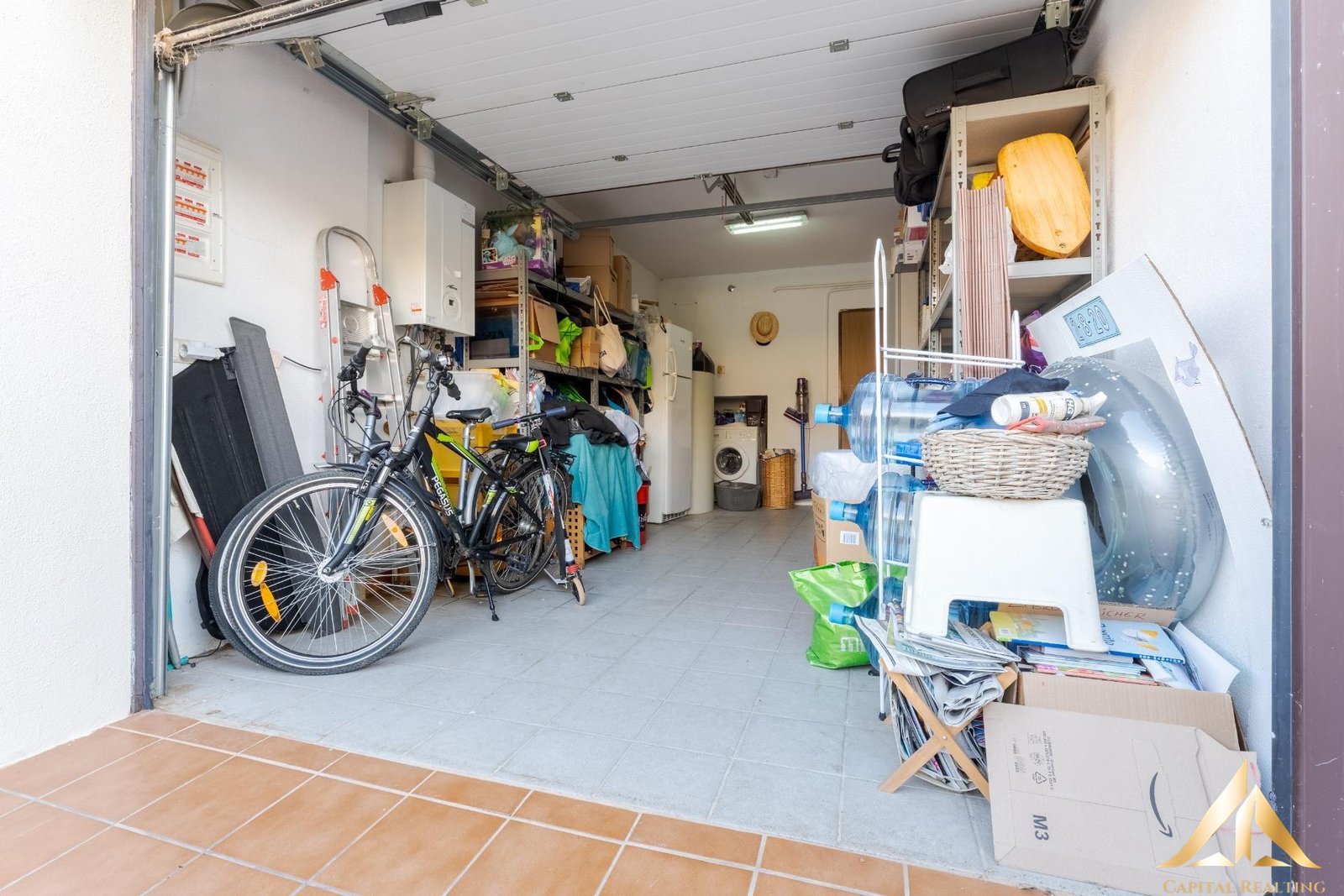 Outside, awnings provide shade and comfort, and solar panels for hot water boost efficiency and energy savings. The house also includes parking and a storage room, offering practical storage solutions and convenience.