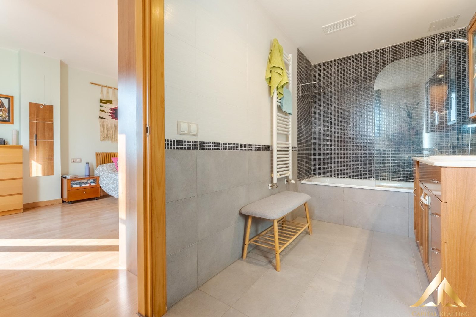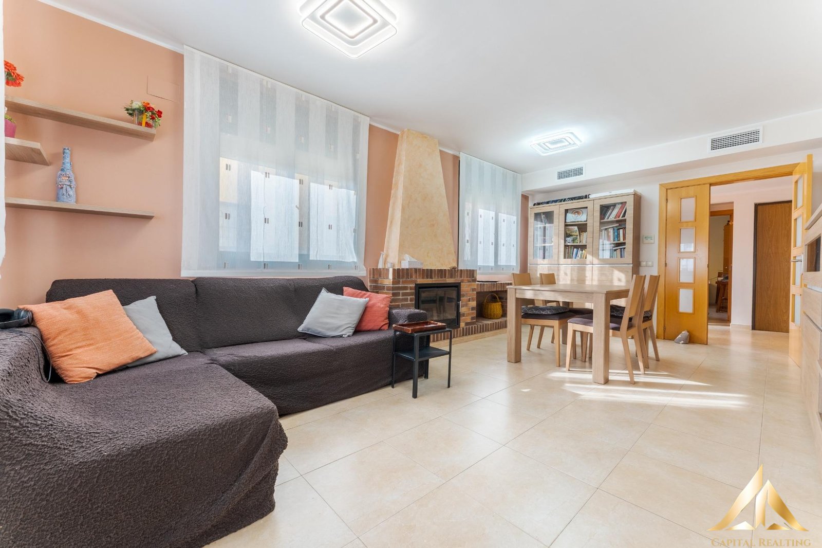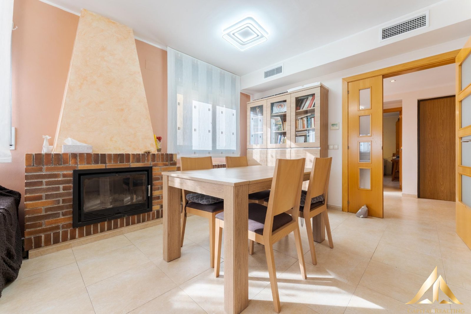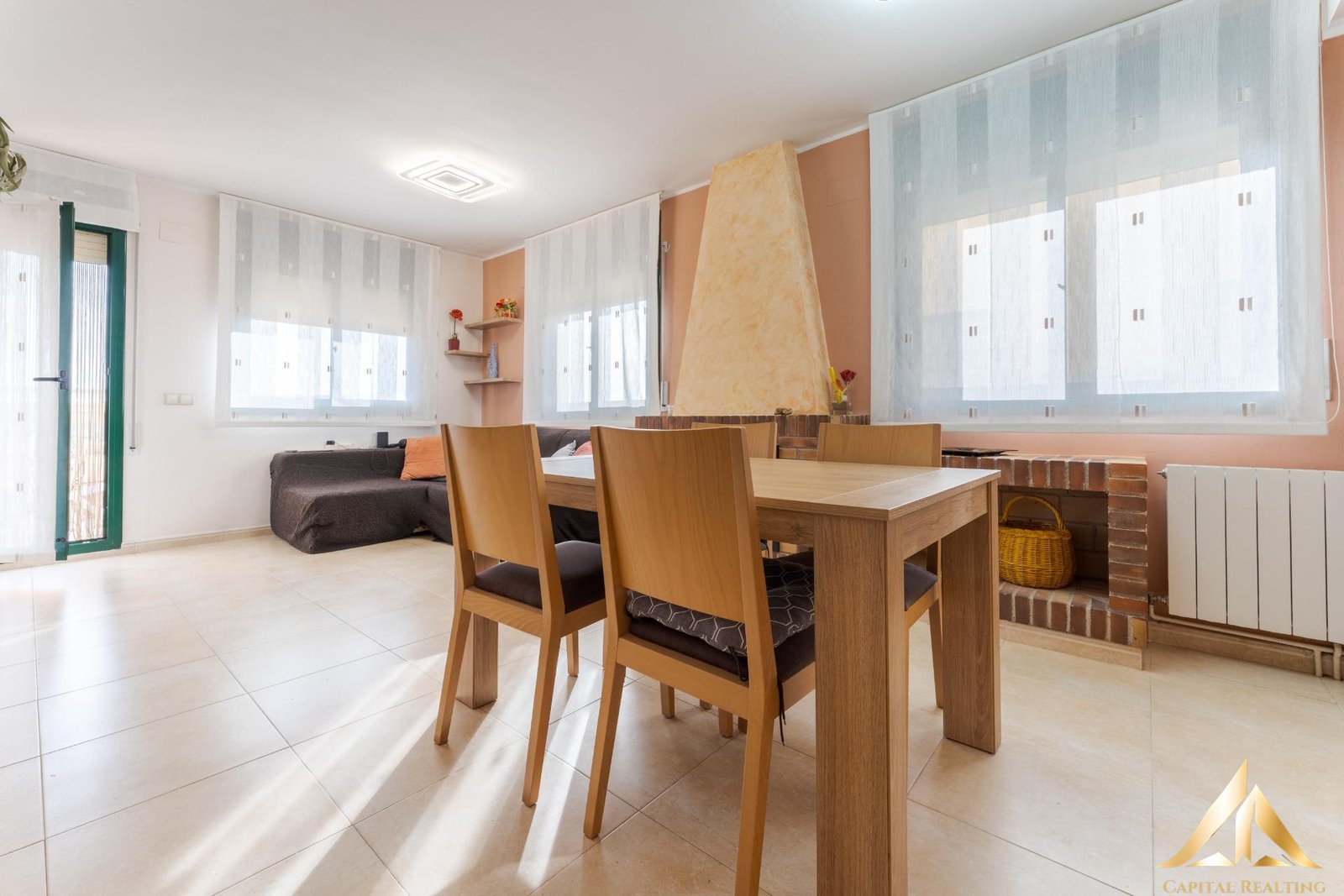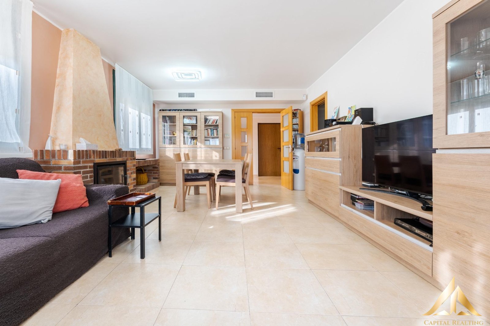 The warm and bright living-dining room flows seamlessly into the kitchen, which provides easy access to the garden and barbecue area, creating a natural connection between indoors and outdoors—perfect for everyday living and gatherings with family and friends.