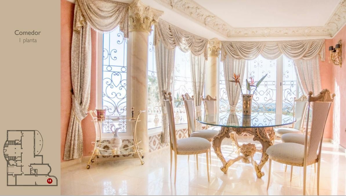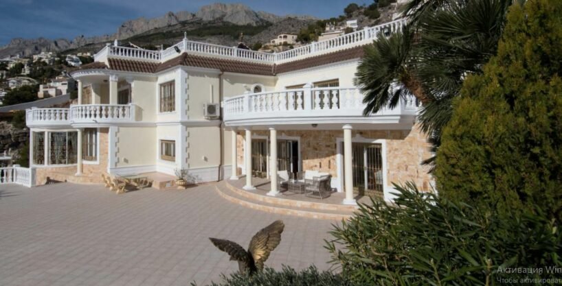 For sale is a luxurious villa in the city of Altea. The area of the house is 743 m2. On the first floor, there is a living room, an office, three bedrooms, a separate kitchen, a dining room, and a game room. On the second floor, there are three bedrooms, three bathrooms, a living room, two walk-in closets, and four balconies.