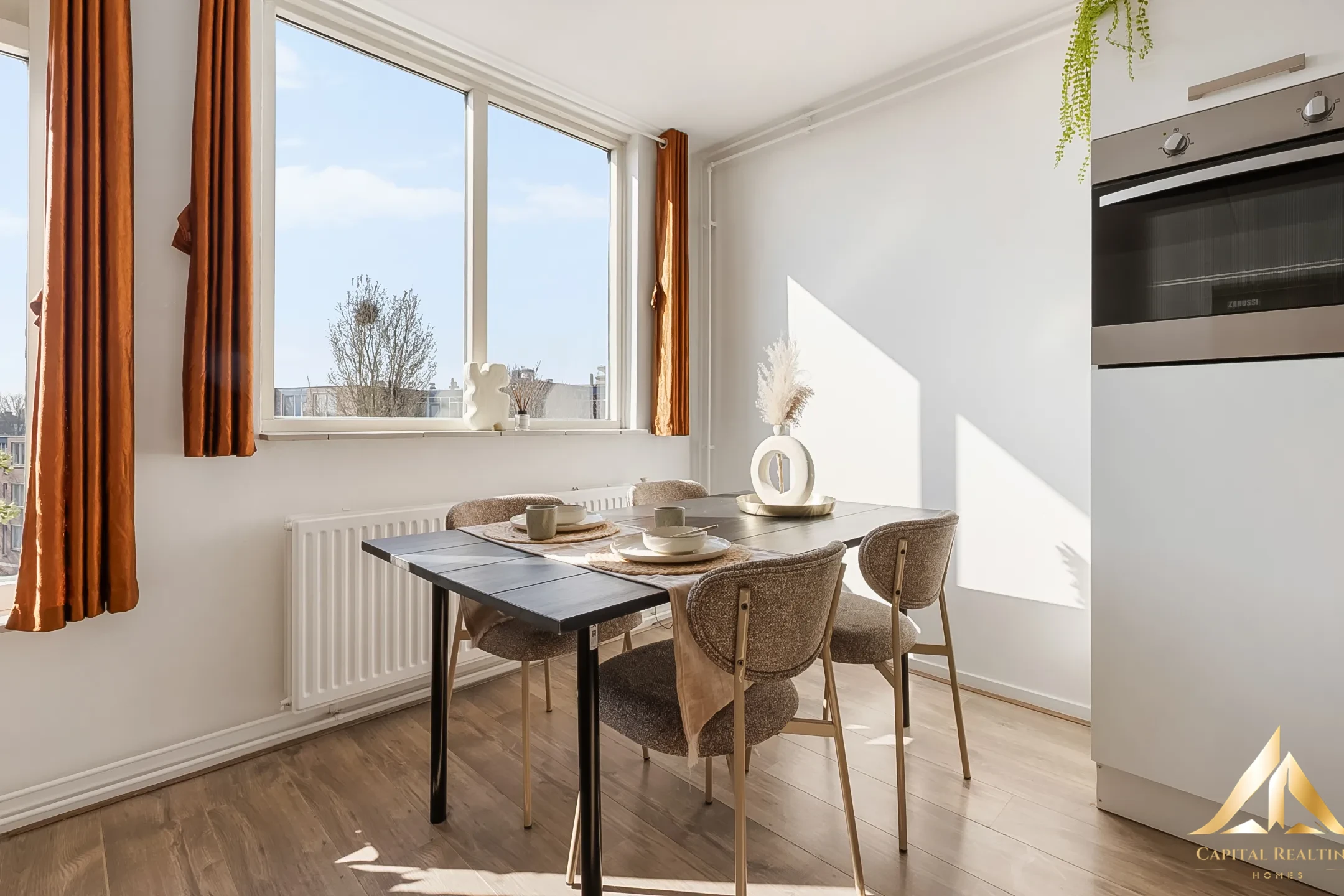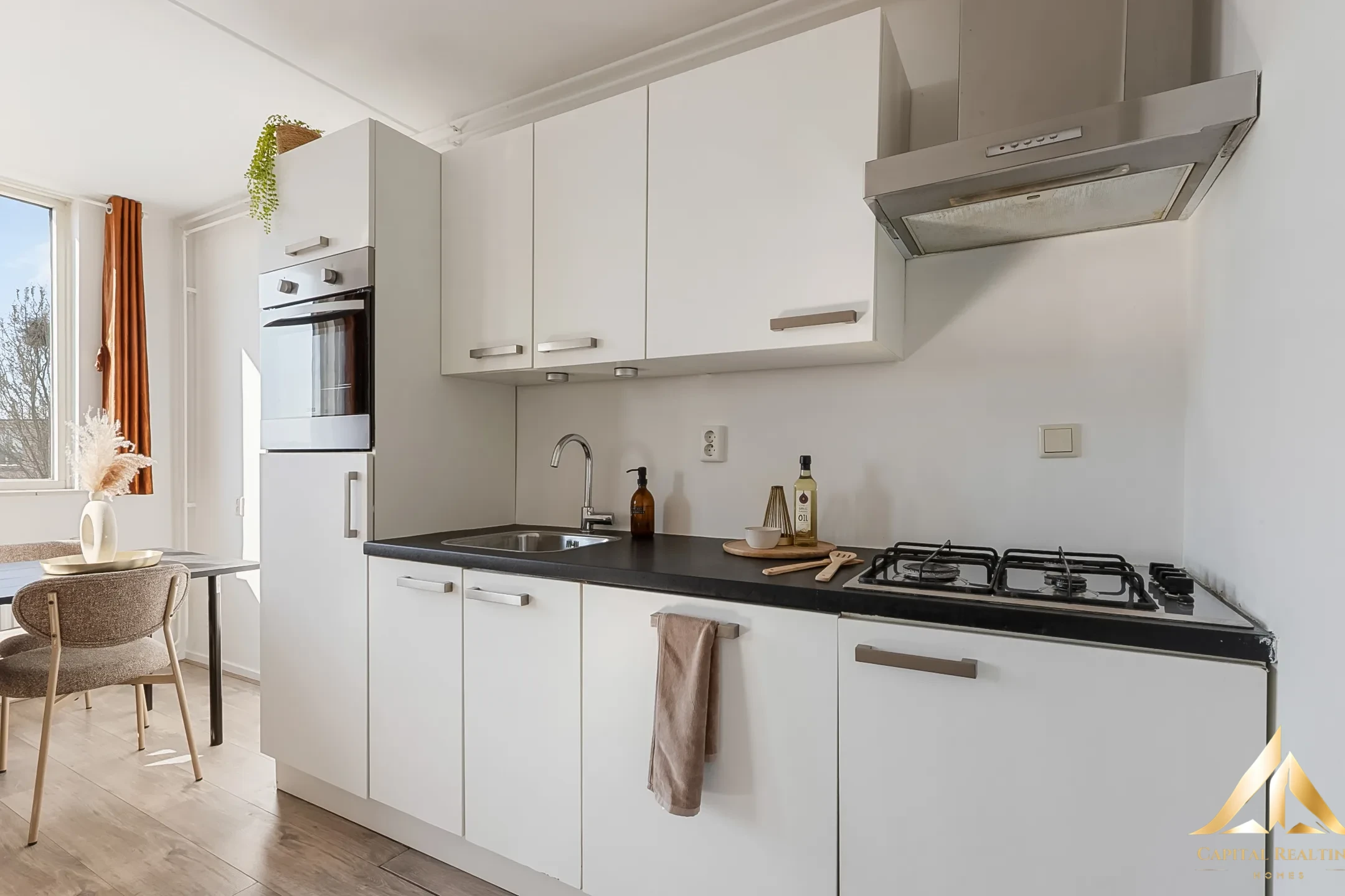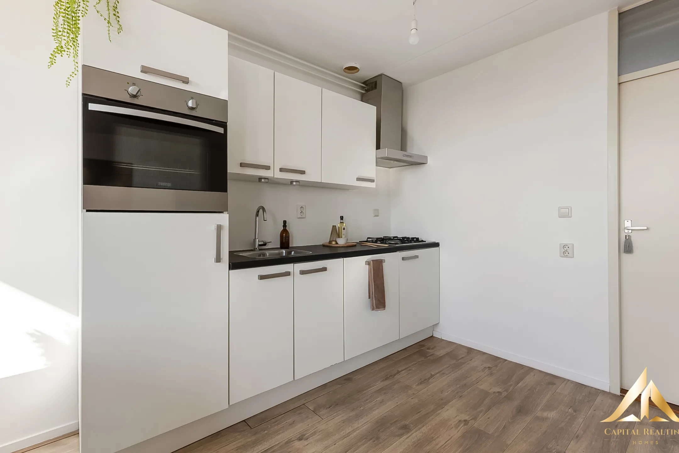 Уютная двухкомнатная квартира на верхнем этаже недалеко от центра Хильверсума. Эта светлая двухкомнатная квартира расположена на четвертом, верхнем этаже ухоженного жилого комплекса. Расположение идеальное: тихая жизнь в зеленом районе, но с прямым доступом к автомагистралям A1 и A27. До оживленного центра Хильверсума можно добраться за пять минут на велосипеде, а за покупками нужно всего лишь пройтись за угол. Это делает квартиру идеально подходящей для очень широкой целевой группы, которая ищет сочетание комфортной и тихой жизни, с городом всегда рядом. ПЛАНИРОВКА: Закрытый вход с почтовыми ящиками, лестница на верхний этаж. Прихожая/коридор со шкафом, где можно разместить котел центрального отопления. Просторная ванная комната с душевой кабиной с ручным и тропическим душем. Раковина и подвесной унитаз. В ванной можно разместить стиральную машину с сушкой. Просторная гостиная с окнами, открывающими удивительно красивый вид на крыши Хильверсума. Открытая, отделанная глянцевыми белыми стенами кухня с холодильником и морозильной камерой, газовой плитой на 4 конфорки, вытяжкой, духовкой и посудомоечной машиной. Просторная спальня доступна из гостиной. Имеется общая терраса на крыше, а в подвале расположена большая кладовая с электричеством для хранения велосипеда и бытовых вещей.