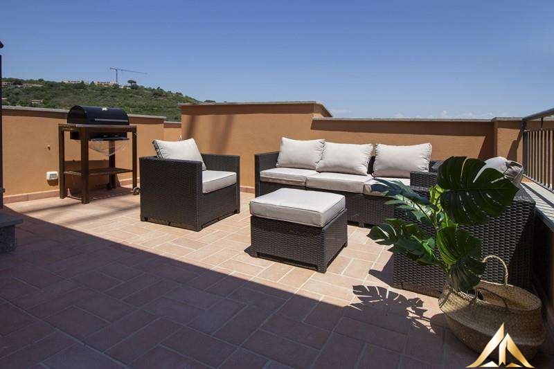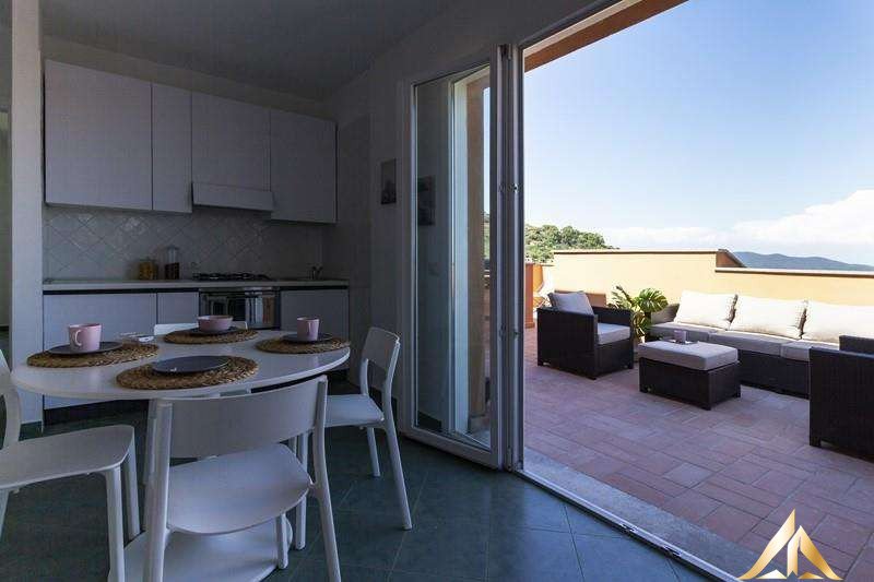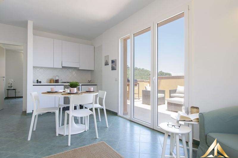 Castiglione della Pescaia , at a short distance to the town center and to the beach , we have on sale this new built apartment with two bedrooms , 1 bathroom , living area with open kitchen , terrace and roof terrace with stunning view . The apartment will be sold with a private undercover parking , air conditioning, fully equipped bathroom and kitchen.The property will be delivered at the end of March 2020.