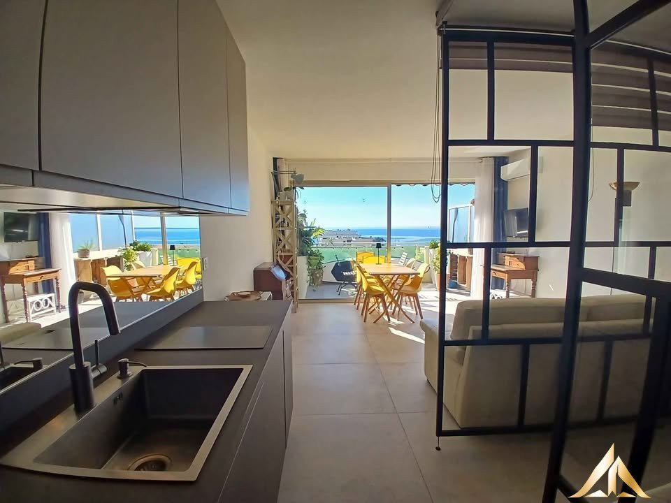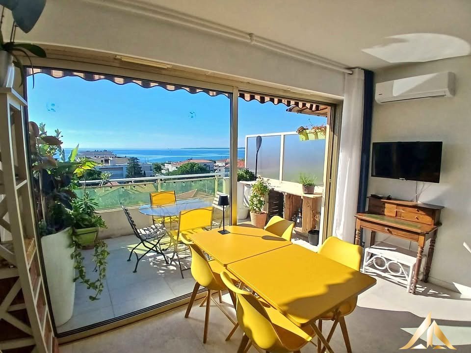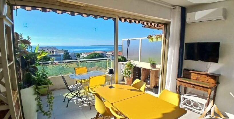 Rare on the market – Studio with terrace of 10,5 m2 and panoramic sea view Just 300m from the beaches of Antibes / Juan-les-Pins, this charming studio, nestled in a quiet and sought-after residential neighborhood, offers a unique opportunity – ideal for a rental investment, secondary residence or year-round residence on the Côte d’Azur. – Last floor of a secure and well maintained residence – Terrace of 10,5 m2, facing south, with breathtaking sea views – Well arranged, fully renovated and air-conditioned – Cellar included – Extra optional garage A rare property combining exceptional location, comfort and Mediterranean charm.