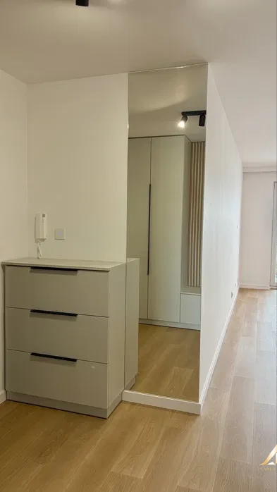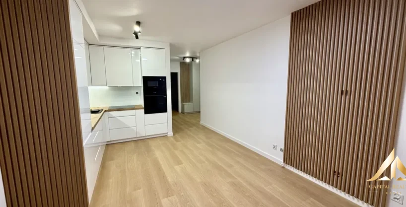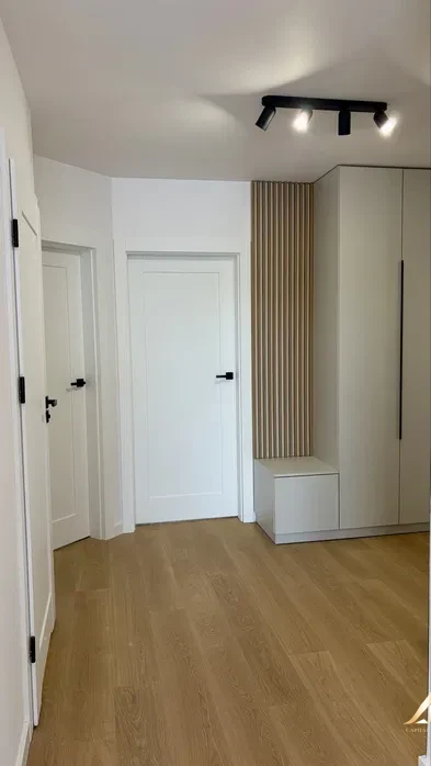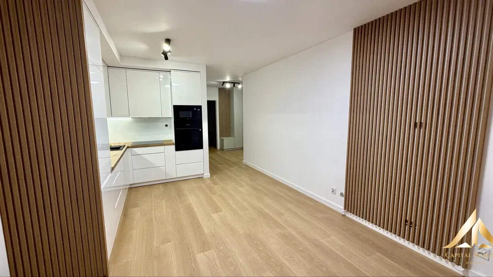 The apartment has been designed with functionality and comfort in mind. It consists of three rooms, which is rare for this area. The kitchen and furniture in the hallway have been designed to measure, which allowed for optimal space management. In the hallway there is a spacious wardrobe.
