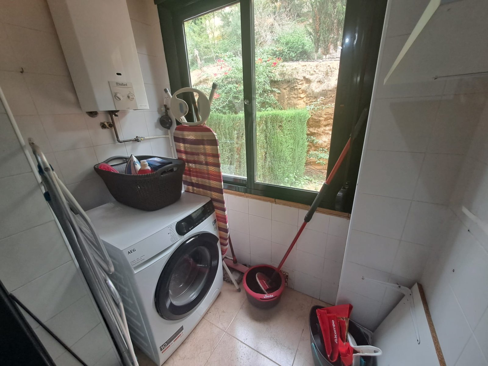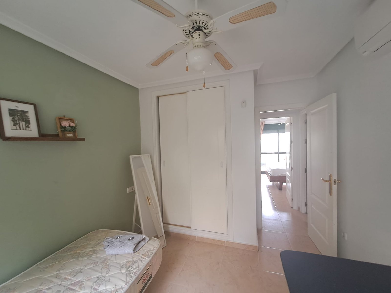 Townhouse for sale in Orihuela Costa. The duplex offers 2 bedrooms, 2 bathrooms, a living room, an open-plan American-style kitchen, and a utility room. The kitchen has access to an inner patio. There is also a rooftop solarium, and a terrace at the entrance to the house.