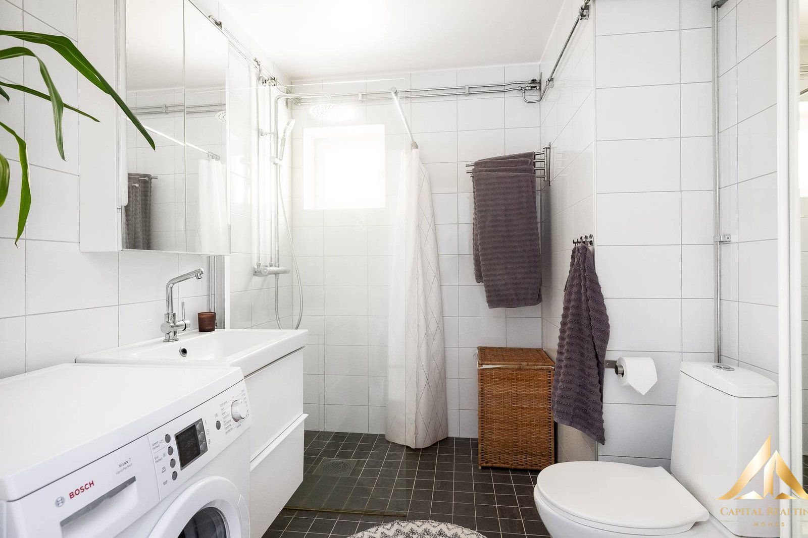 На самой вершине деревьев расположена эта чудесная двухкомнатная квартира, создающая ощущение пентхауса и наполненная фантастическим светом из окон, выходящих в трех направлениях. Здесь вы будете жить, ощущая простор, свободу и зелень за каждым окном. Хорошо продуманная открытая планировка создает приятные зоны для общения, где гостиная, кухня и столовая плавно перетекают друг в друга – идеально как для повседневной жизни, так и для общения. Из гостиной с очаровательным деревянным полом вы попадаете на солнечный балкон, выходящий на юг, где можно наслаждаться солнечными лучами большую часть дня и спокойствием вечера среди деревьев. Спальня тихая, с достаточным местом для двуспальной кровати и хранения вещей, а полностью отделанная плиткой ванная комната сочетает в себе стиль и комфорт. Дом расположен в приятном, благоустроенном районе, недалеко от природы, инфраструктуры и с хорошей транспортной доступностью. Жилой комплекс стабильный и ухоженный – здесь вы будете жить комфортно и безопасно долгие годы, имея свободные от автомобилей дворы и удобные и доступные парковочные места!