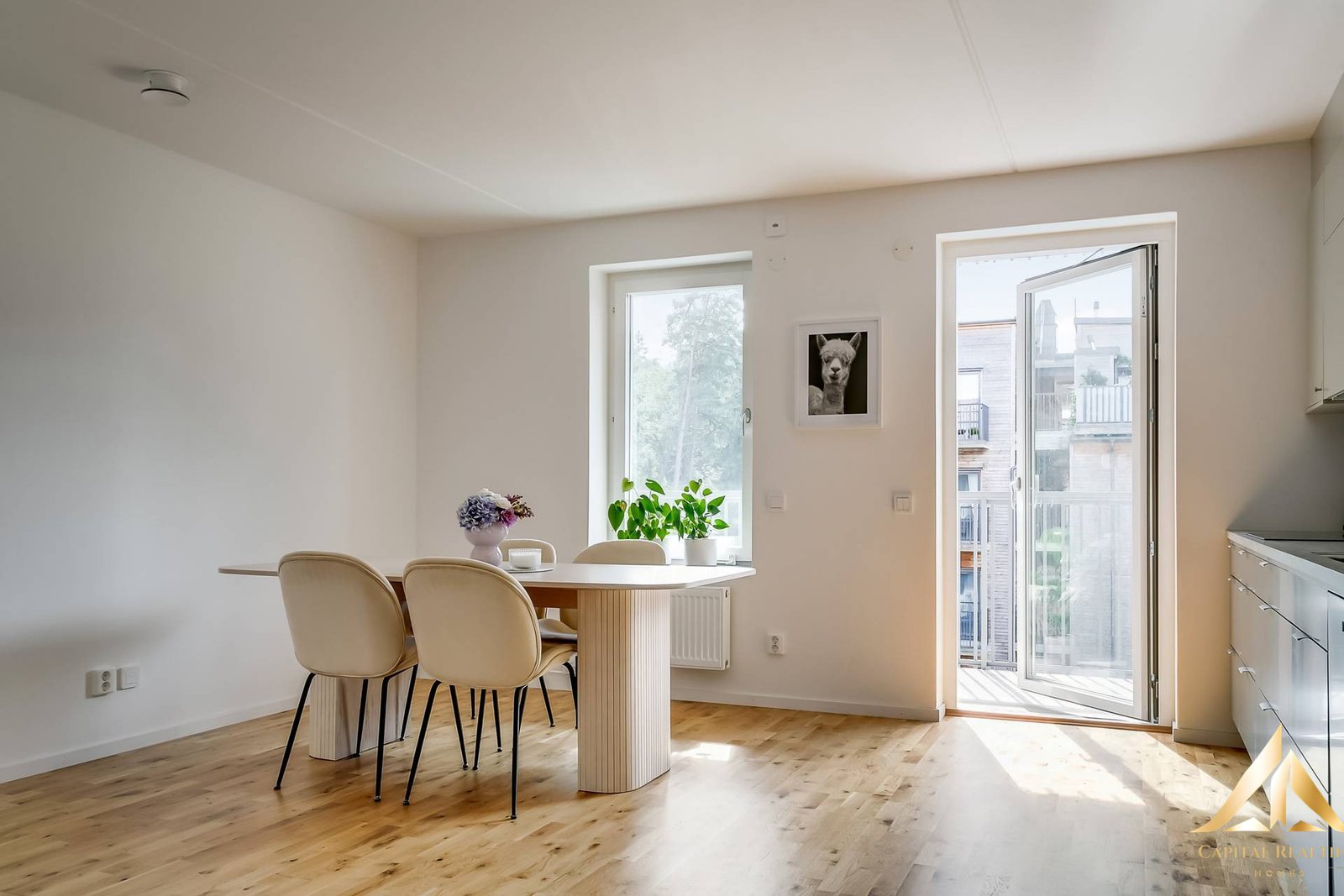 Балкон выходит прямо на юг, что позволяет наслаждаться солнечными лучами с утра до вечера. В квартире расположена просторная кухня-гостиная открытой планировки, создающая уютную и гостеприимную атмосферу, идеально подходящую для общения. Кухня современная, элегантная и полностью оборудована большими рабочими поверхностями. В квартире также есть просторная спальня с прямым доступом в кладовую/гардеробную, которую можно переоборудовать в детскую комнату, гостевую комнату или домашний офис. Ванная комната полностью облицована плиткой и оборудована ванной, стиральной машиной и сушилкой. Кроме того, в квартире много места для хранения вещей. Как член Brf Bolighuset, вы имеете доступ к большой общей зоне. Также имеется просторный зал для собраний, который можно забронировать для проведения крупных мероприятий. Кроме того, во дворе есть ухоженные газоны. Окрестности имеют отличное транспортное сообщение: всего в 3 минутах ходьбы находятся пригородные поезда и автобусы. В пешей доступности два тренажерных зала, Hemköp и Ica Nära, а также множество различных ресторанов. Примерно в 2 км от дома находится торговый центр Länna Handelsplats или Port 73, где вы найдете различные продуктовые магазины, аптеки, спортивные залы и несколько ресторанов. Школа и детский сад находятся менее чем в 5 минутах ходьбы. Примерно в 15 минутах езды на автомобиле находится Tyresta Friluftsområde, а Norrbybadet — примерно в 1,9 км.